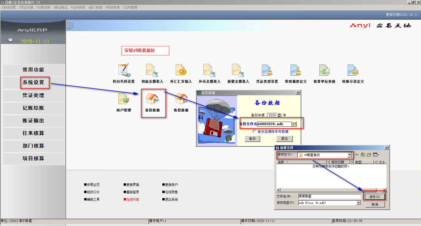 安易V5软件------------------->帐套备份方法和步骤