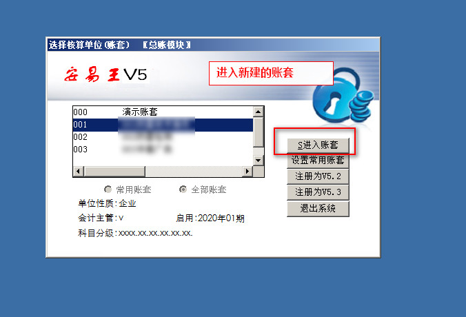 v5.104-进入新建立的账套