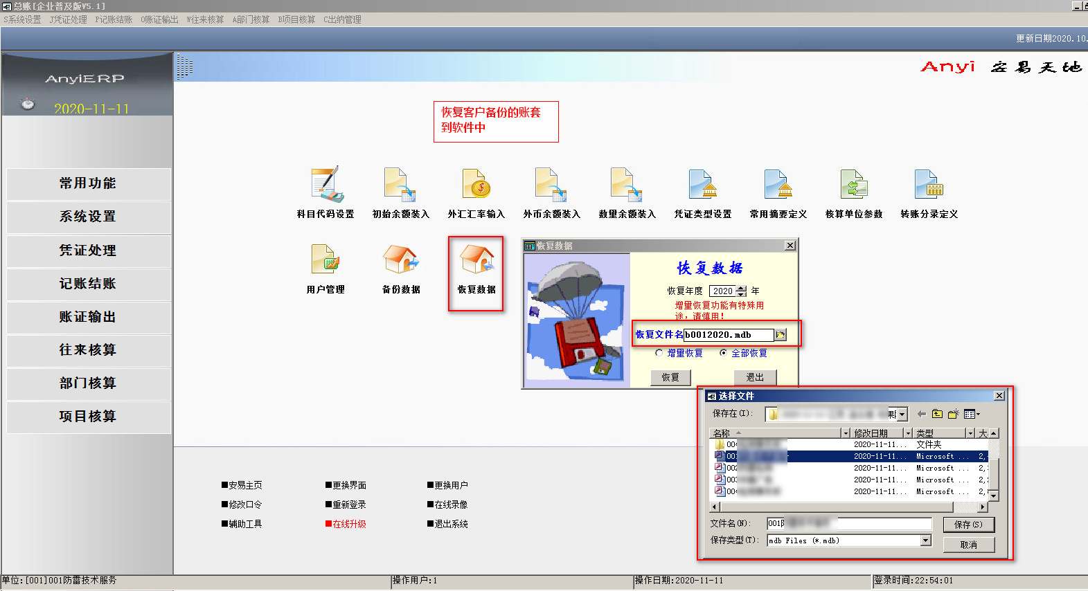 v5.105-恢复客户账套到软件中