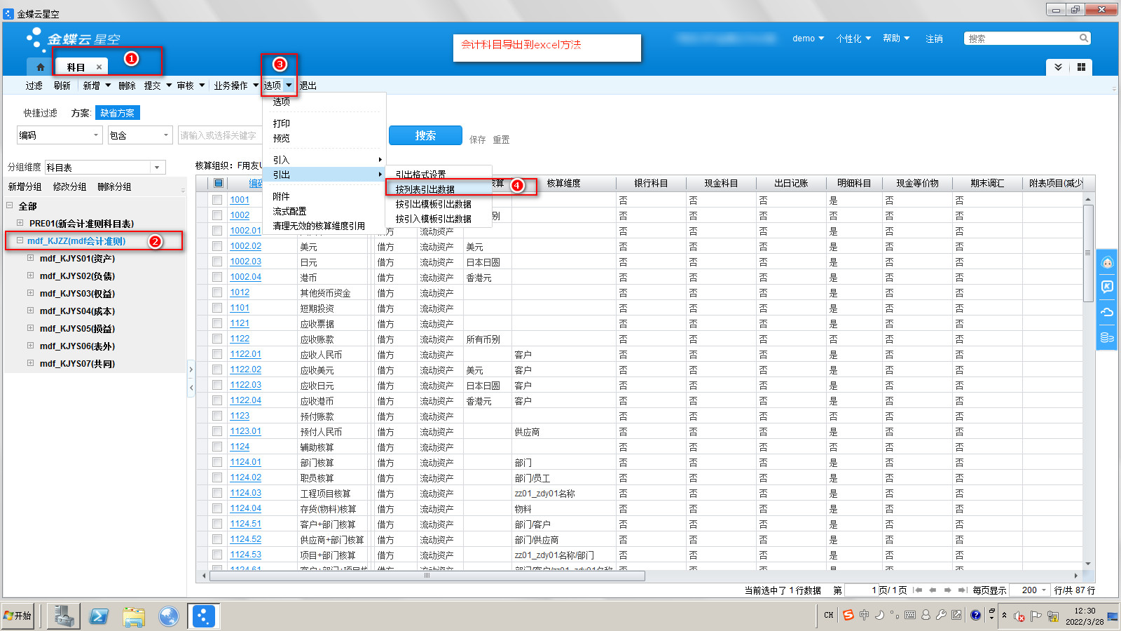 金蝶云星空(Cloud)数据导出到excel中的方法步骤