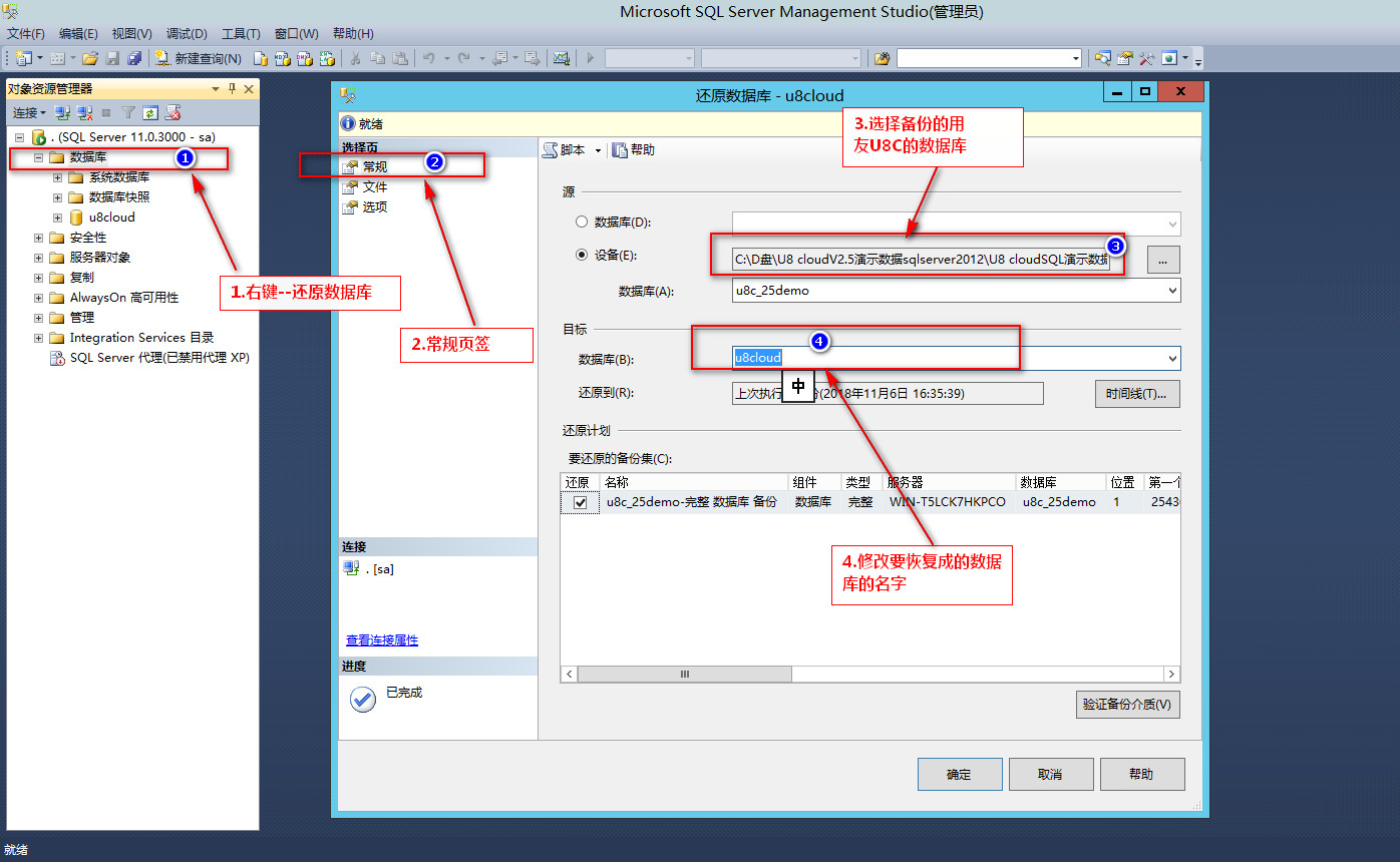 用友u8cloud如何恢复备份的账套(sql数据库)