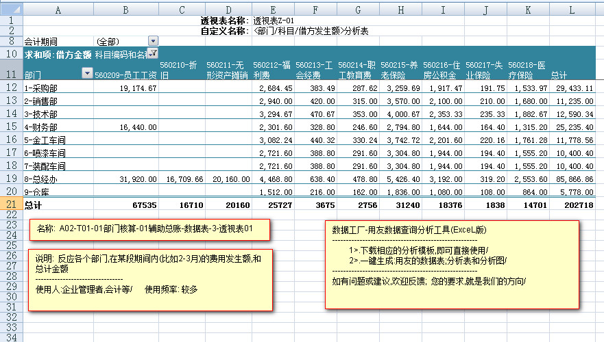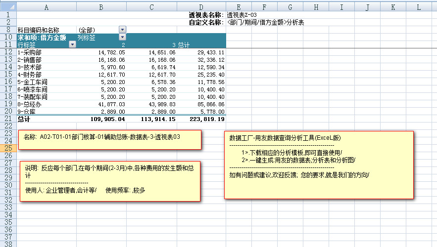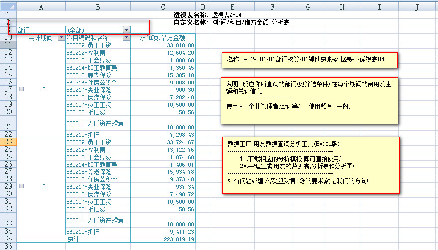 ----------< A02-T01-01部门核算-辅助总账-数据表>---< 3透视表01>---<透视图1>