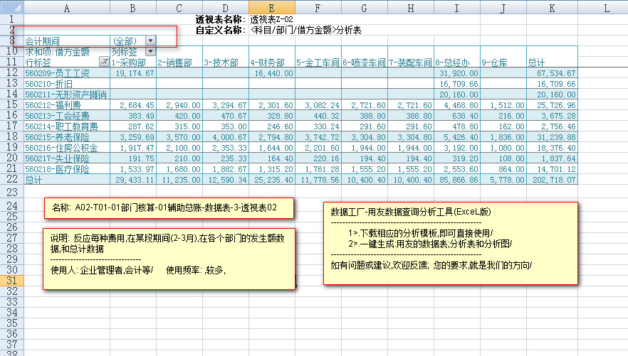 ----------< A02-T01-01部门核算-辅助总账-数据表>---< 3透视表02>