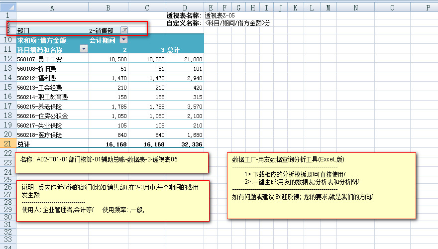 ----------< A02-T01-01部门核算-辅助总账-数据表>---< 3透视表05>