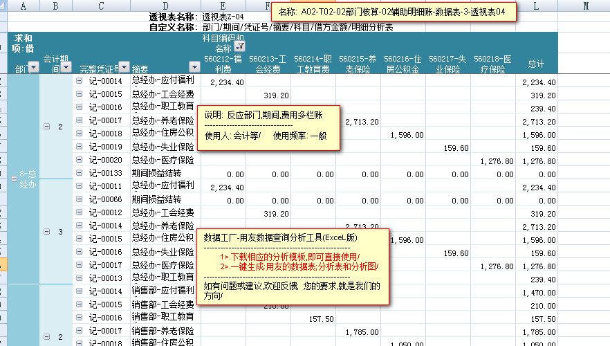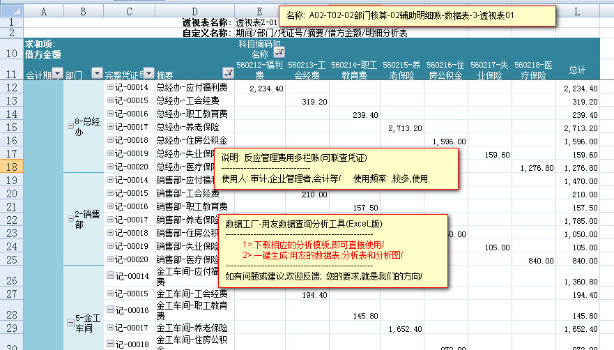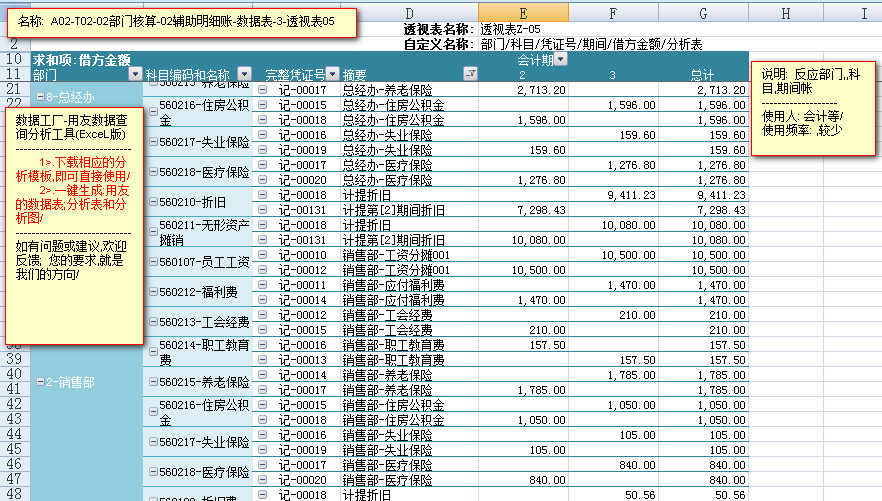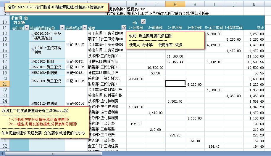 模板文件的名称: <A02-T02-02部门核算-辅助明细账-数据表>