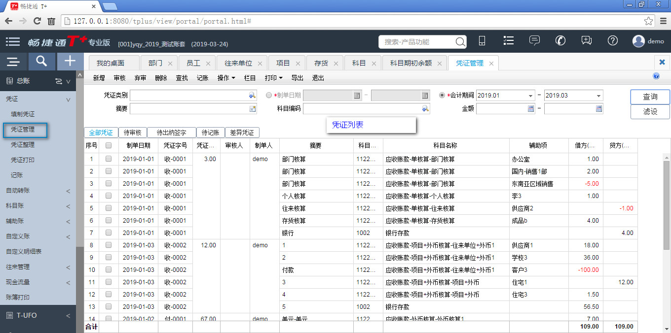用友畅捷通t+---凭证列表