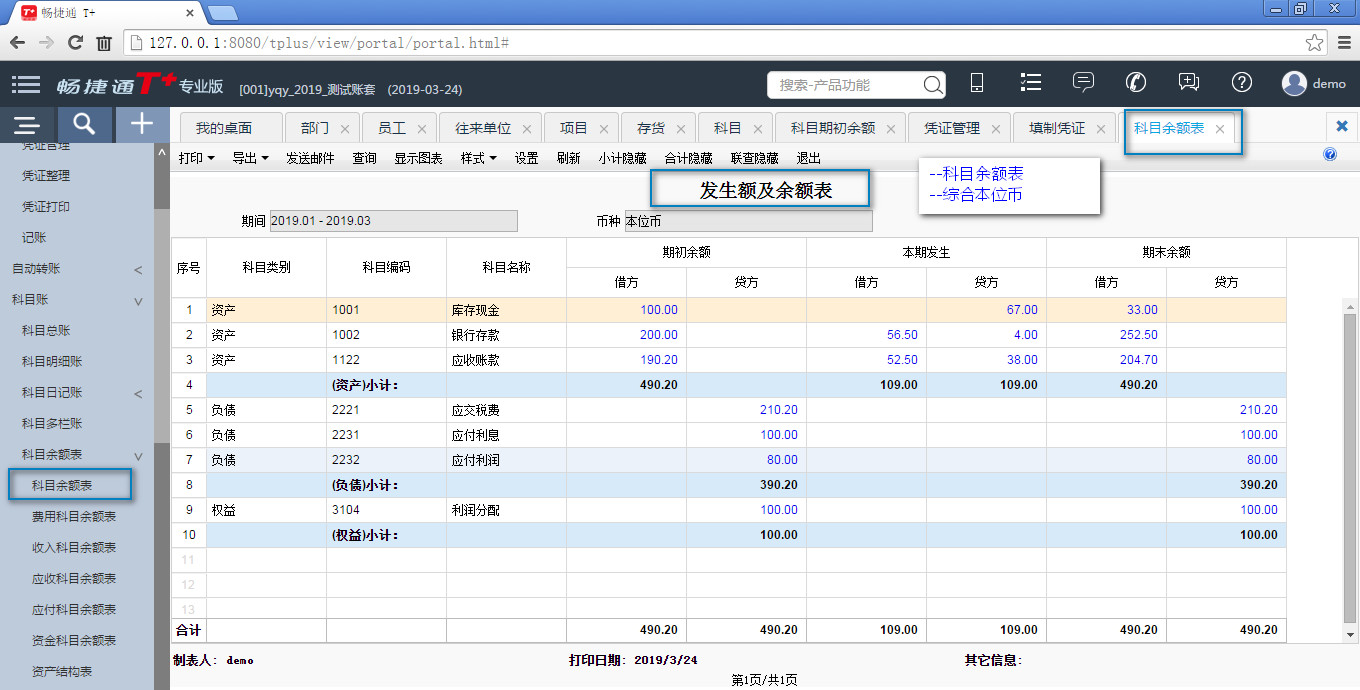 用友畅捷通t+---余额表
