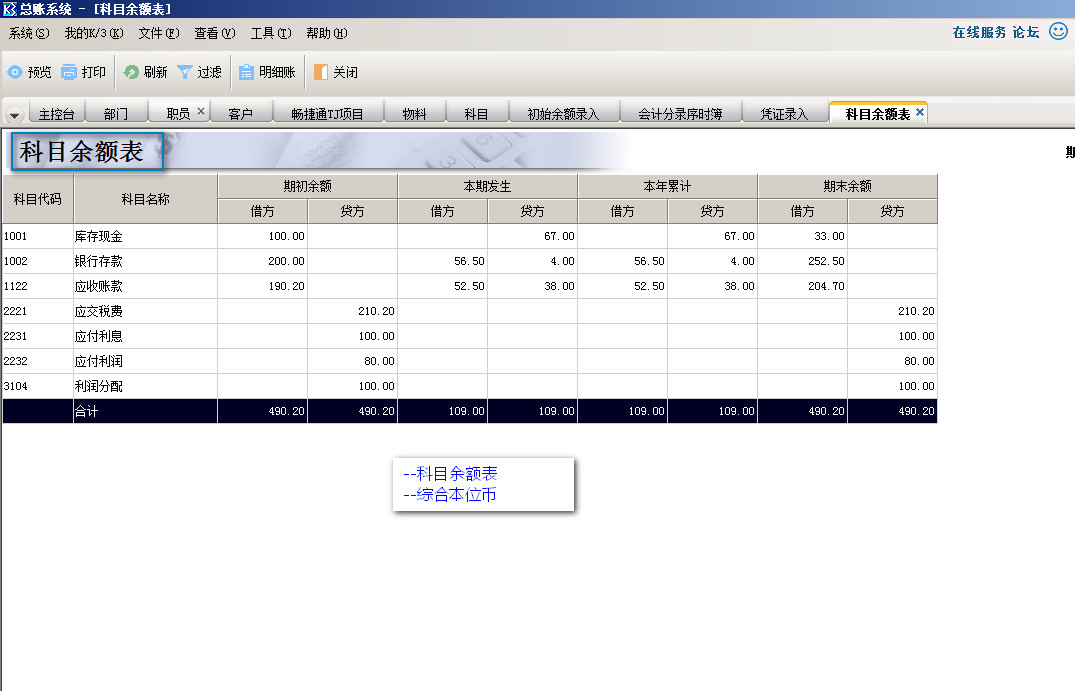 金蝶K3---余额表