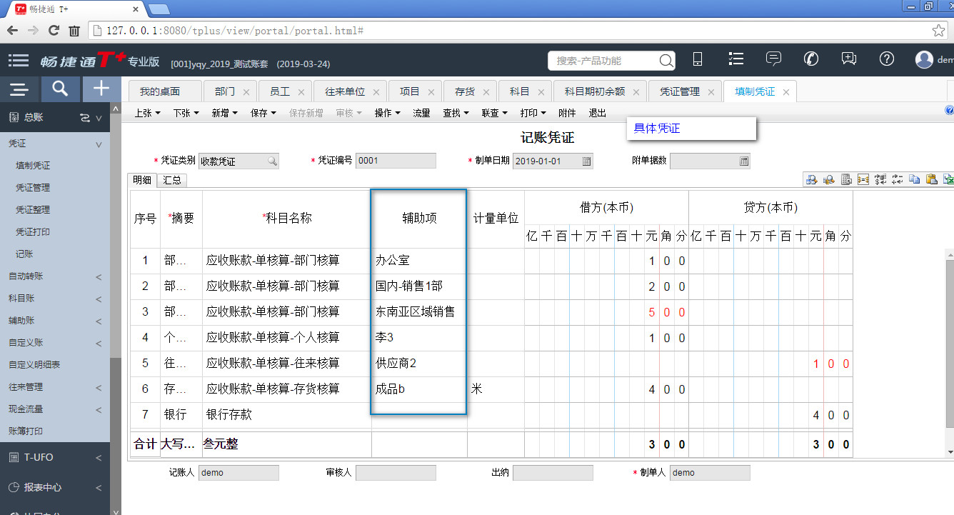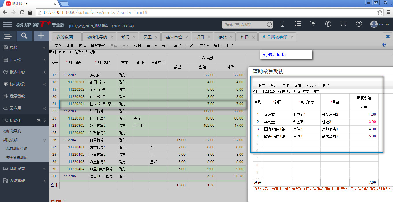 用友畅捷通t+---辅助项期初
