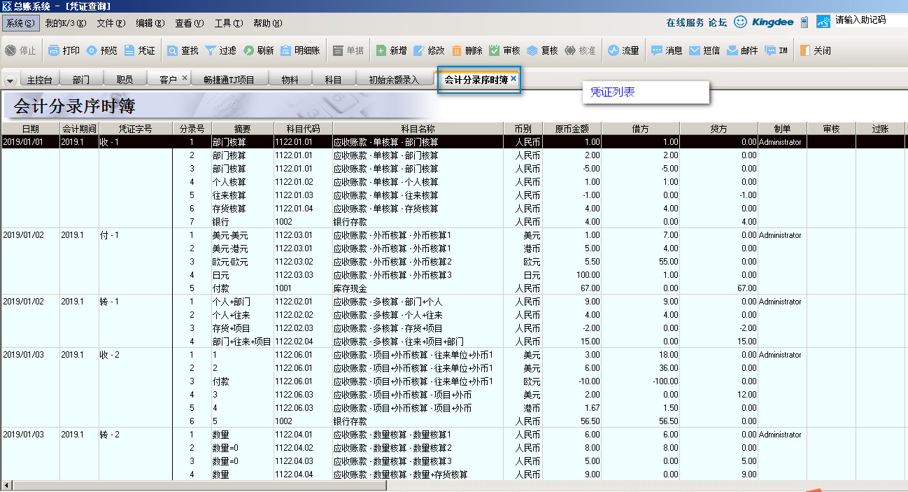 金蝶K3---凭证列表