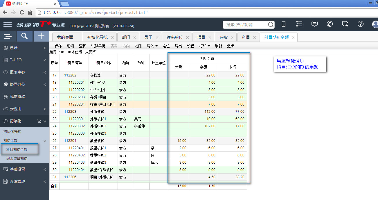 用友畅捷通t+---科目汇总期初