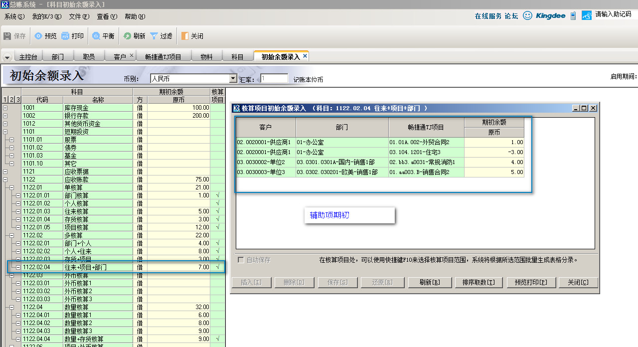 金蝶K3---辅助项期初