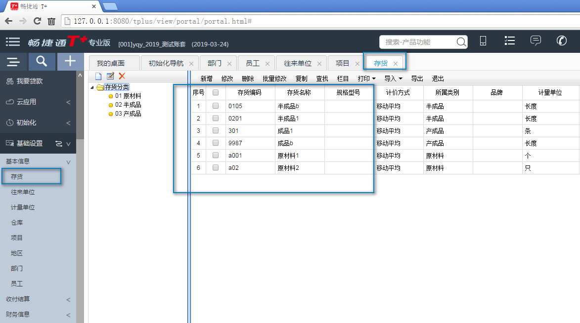 用友畅捷通t+---存货档案