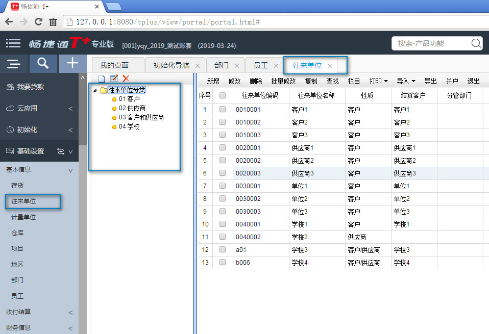 用友畅捷通t+---往来单位档案
