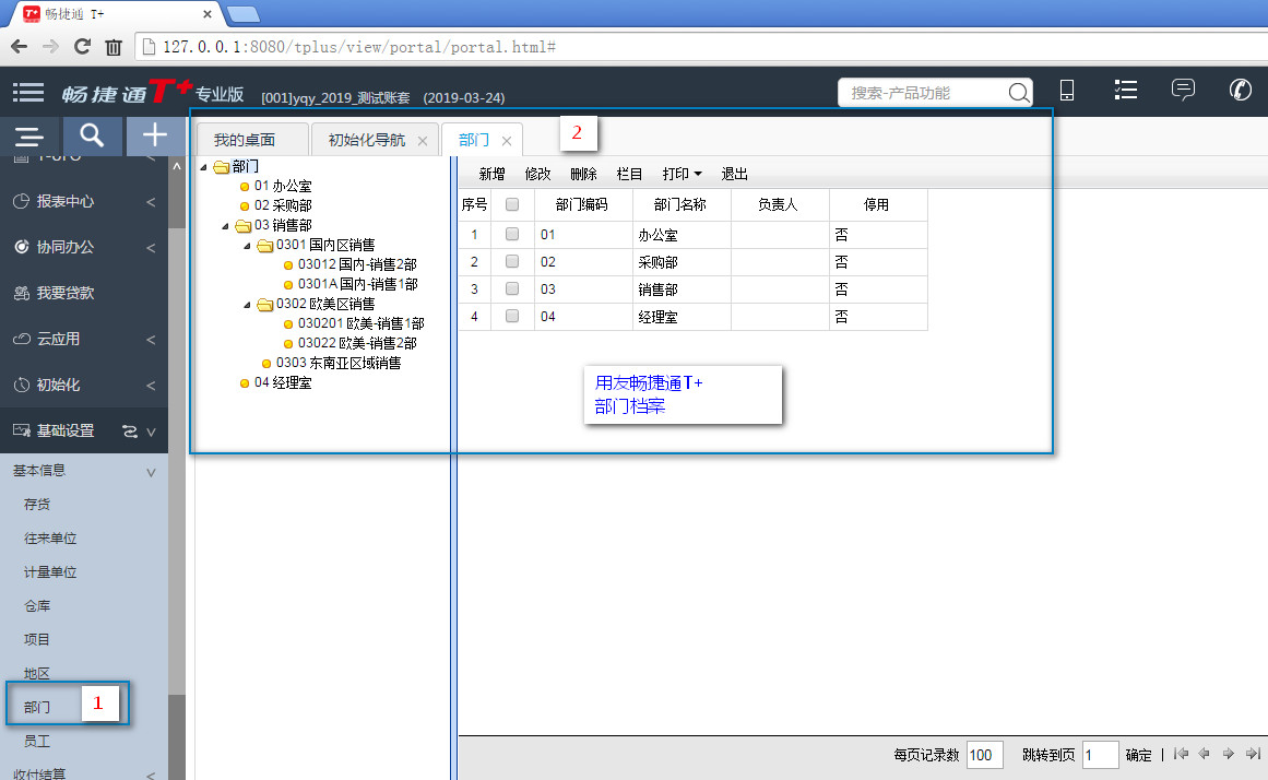 用友畅捷通t+---部门档案