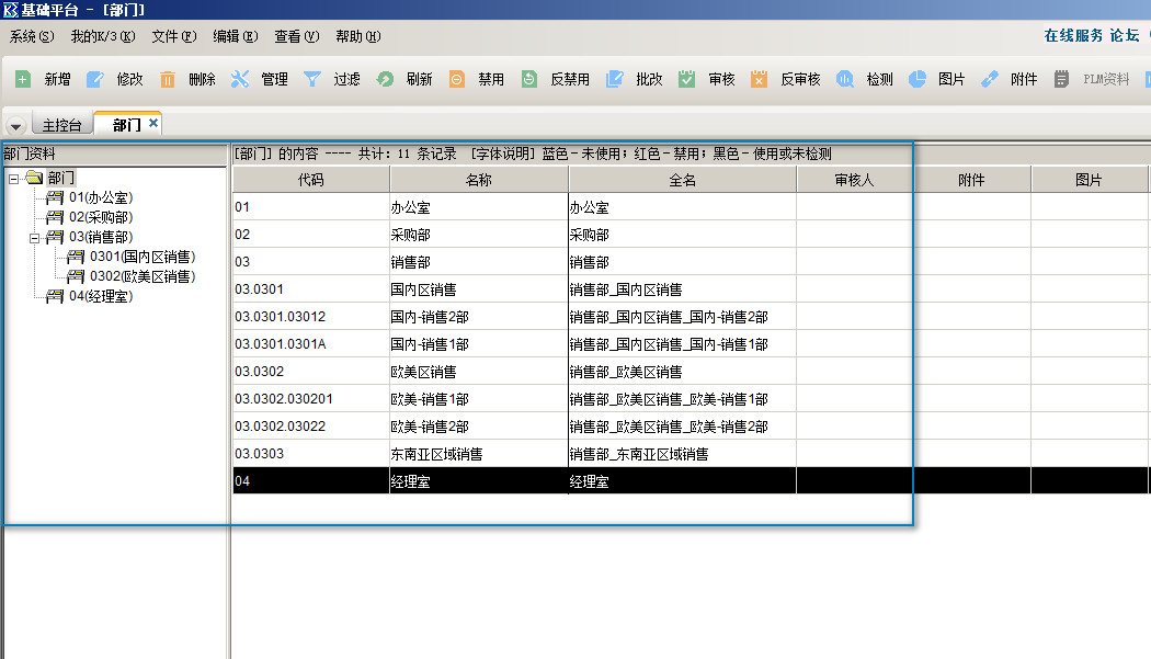 金蝶K3---部门档案