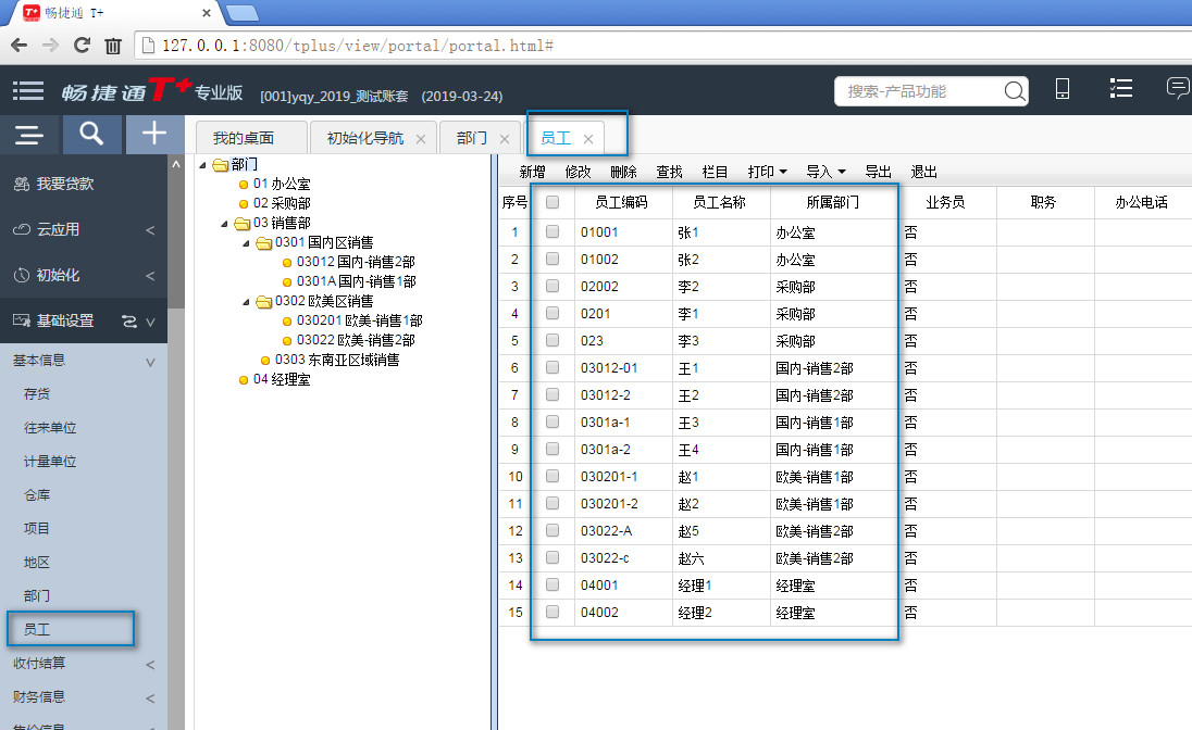 用友畅捷通t+---职员档案