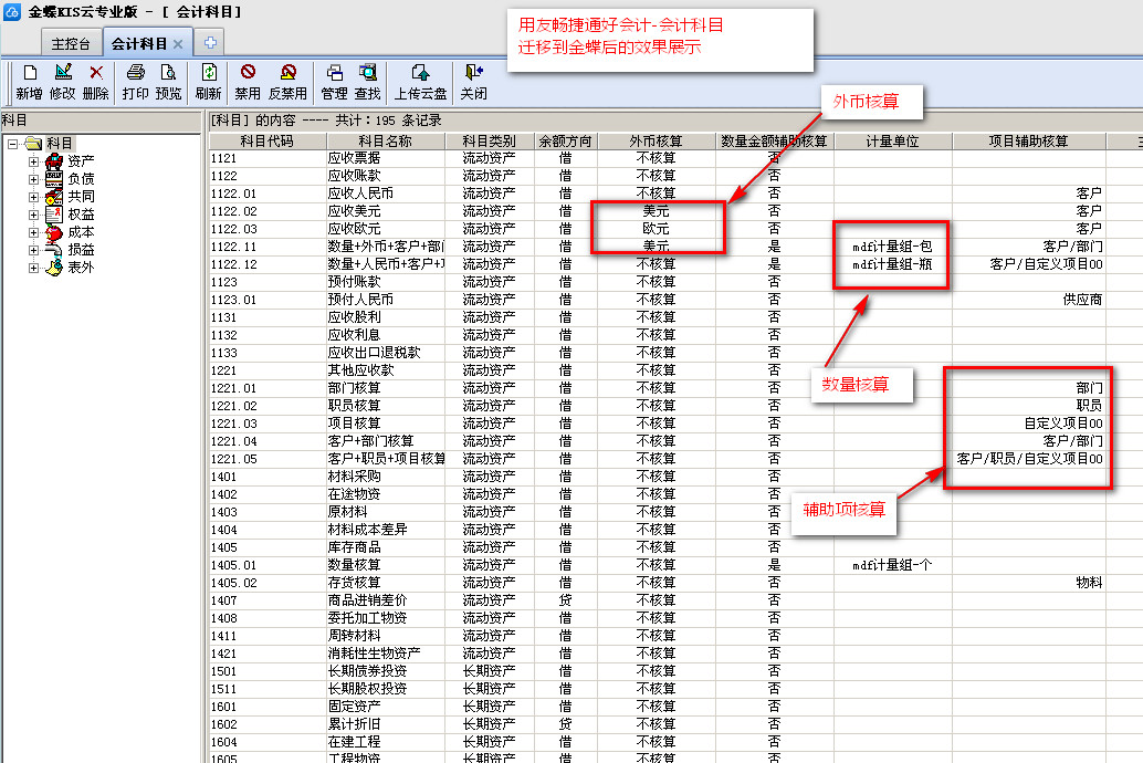 金蝶---会计科目