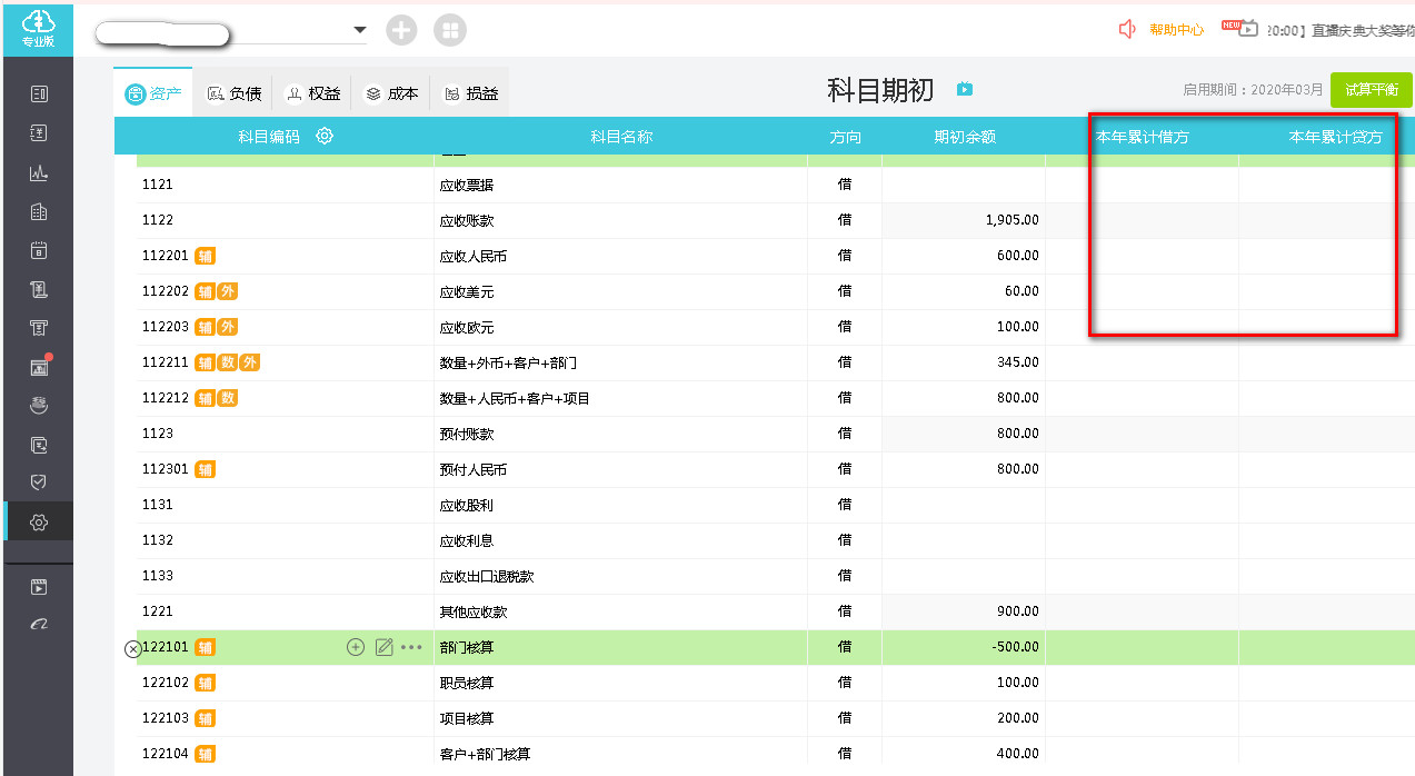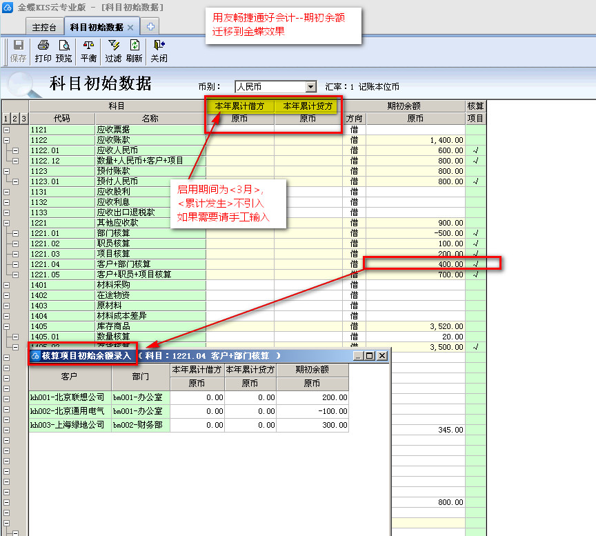 金蝶---科目期初