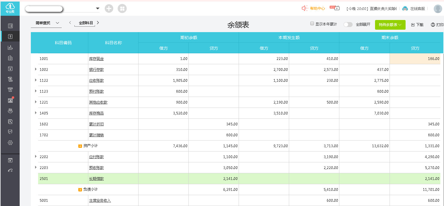 uf-用友畅捷通好会计---科目余额表