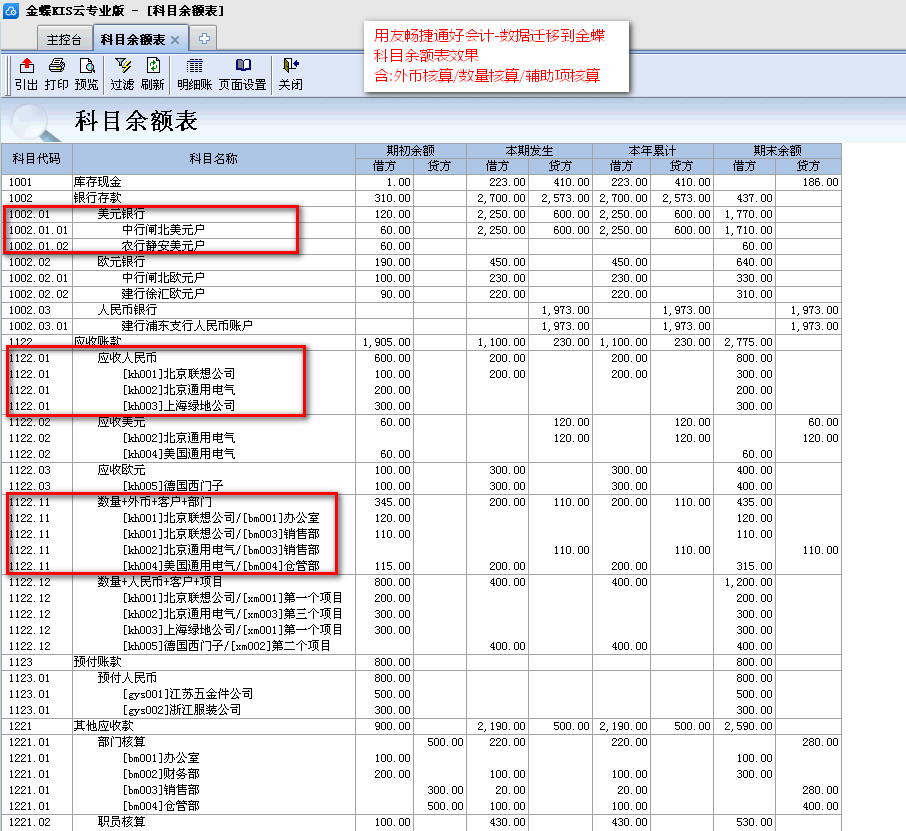 金蝶---科目余额表