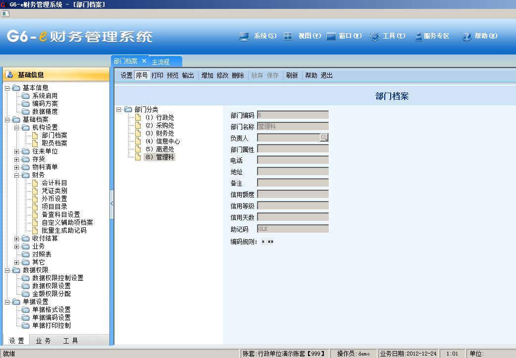 畅捷通g6部门档案