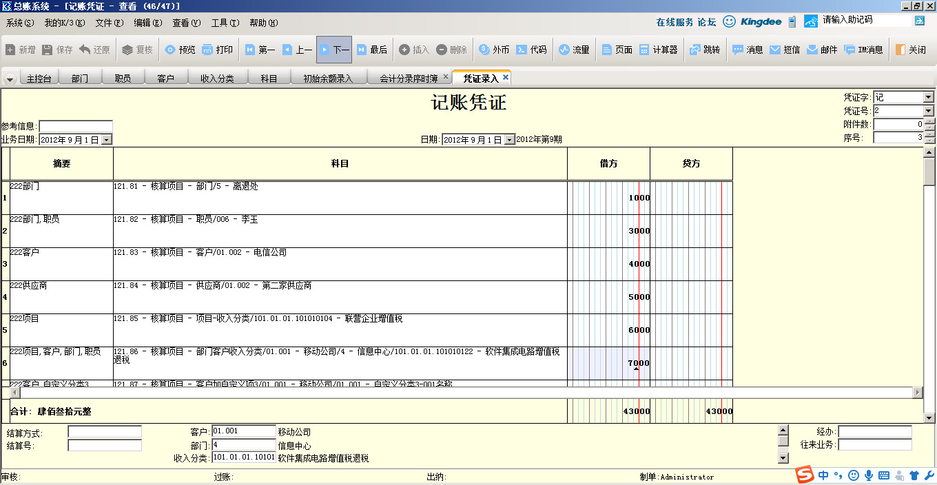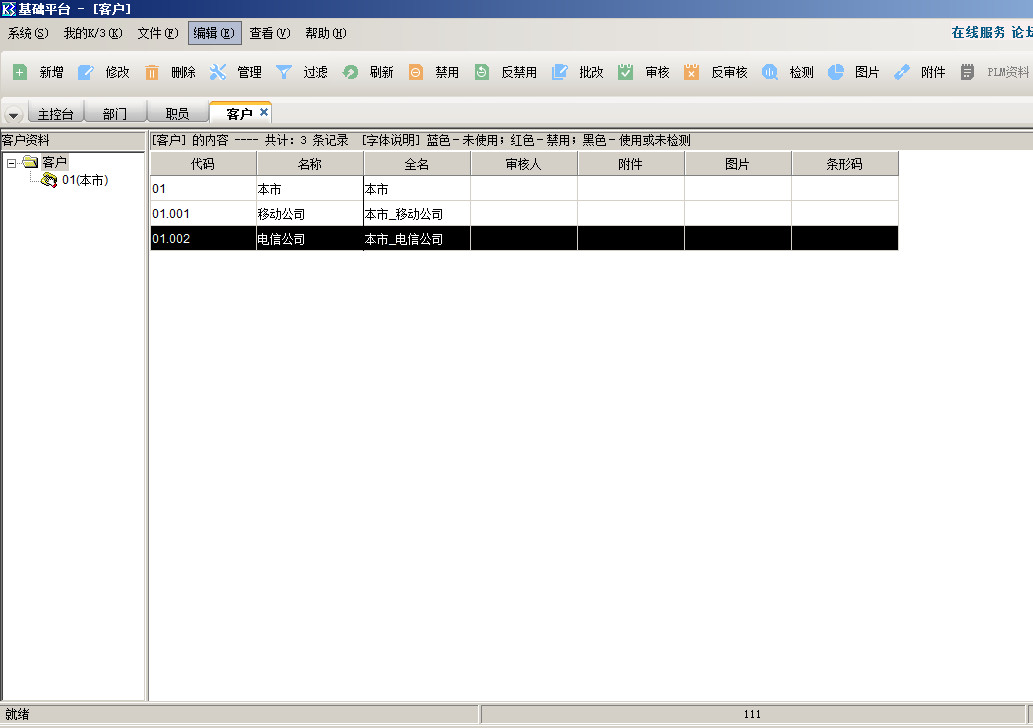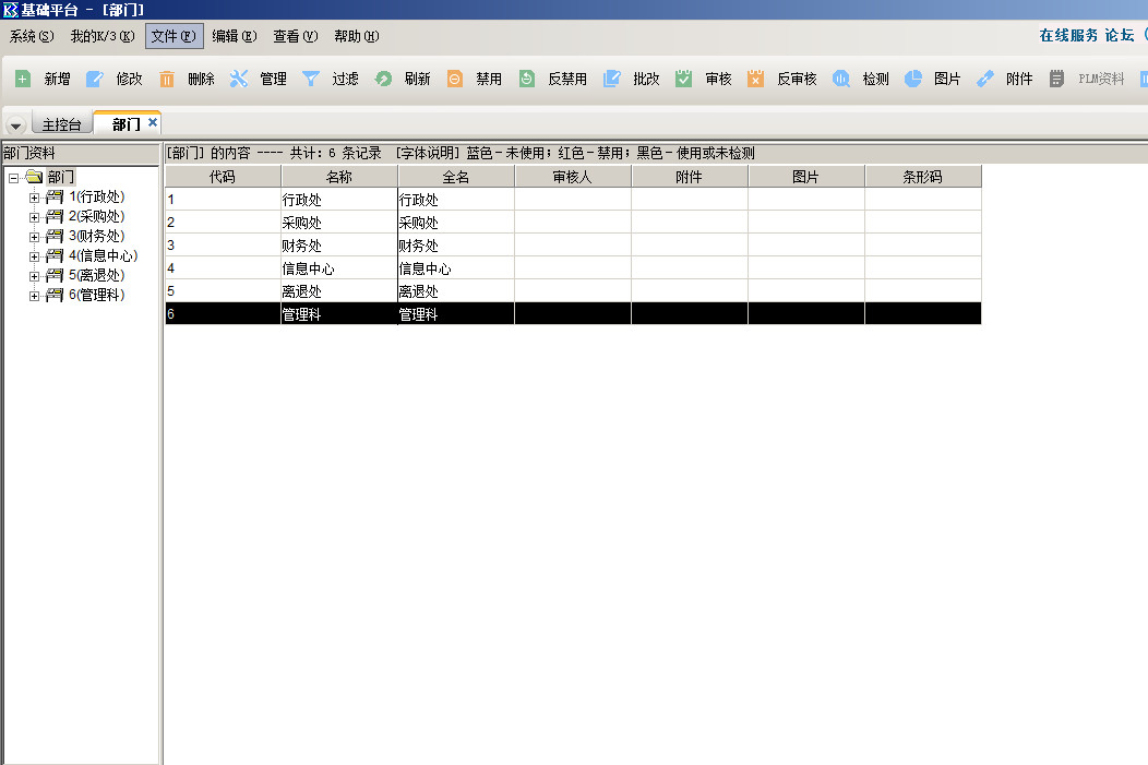 金蝶k3部门档案