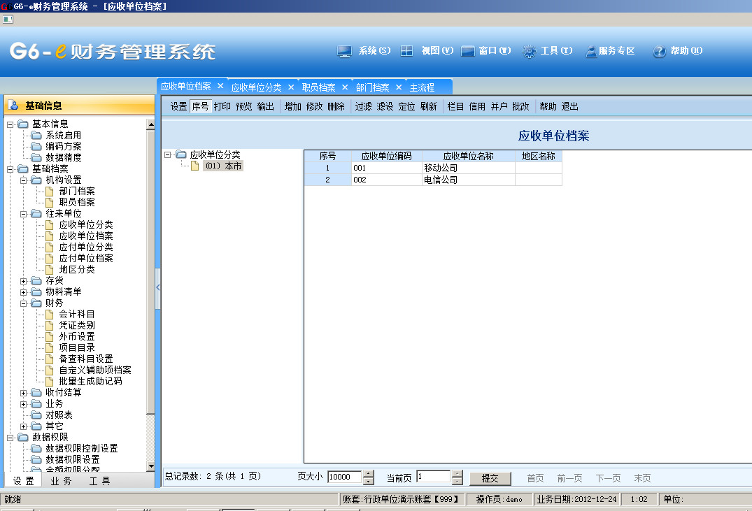 畅捷通g6应收单位档案
