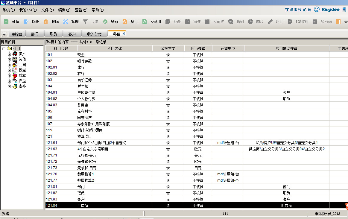 金蝶k3会计科目档案