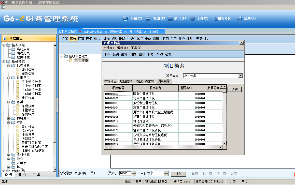 畅捷通g6自定义项目收支分类档案