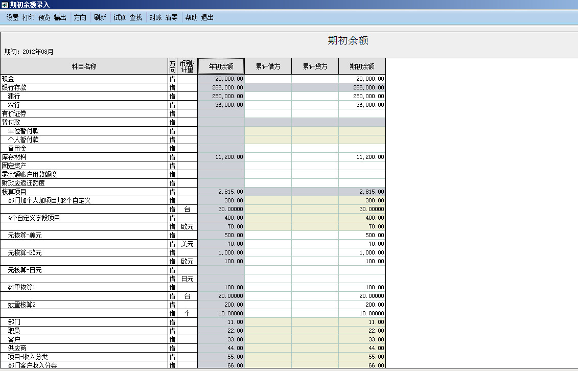 金蝶k3期初余额