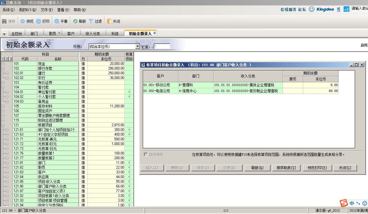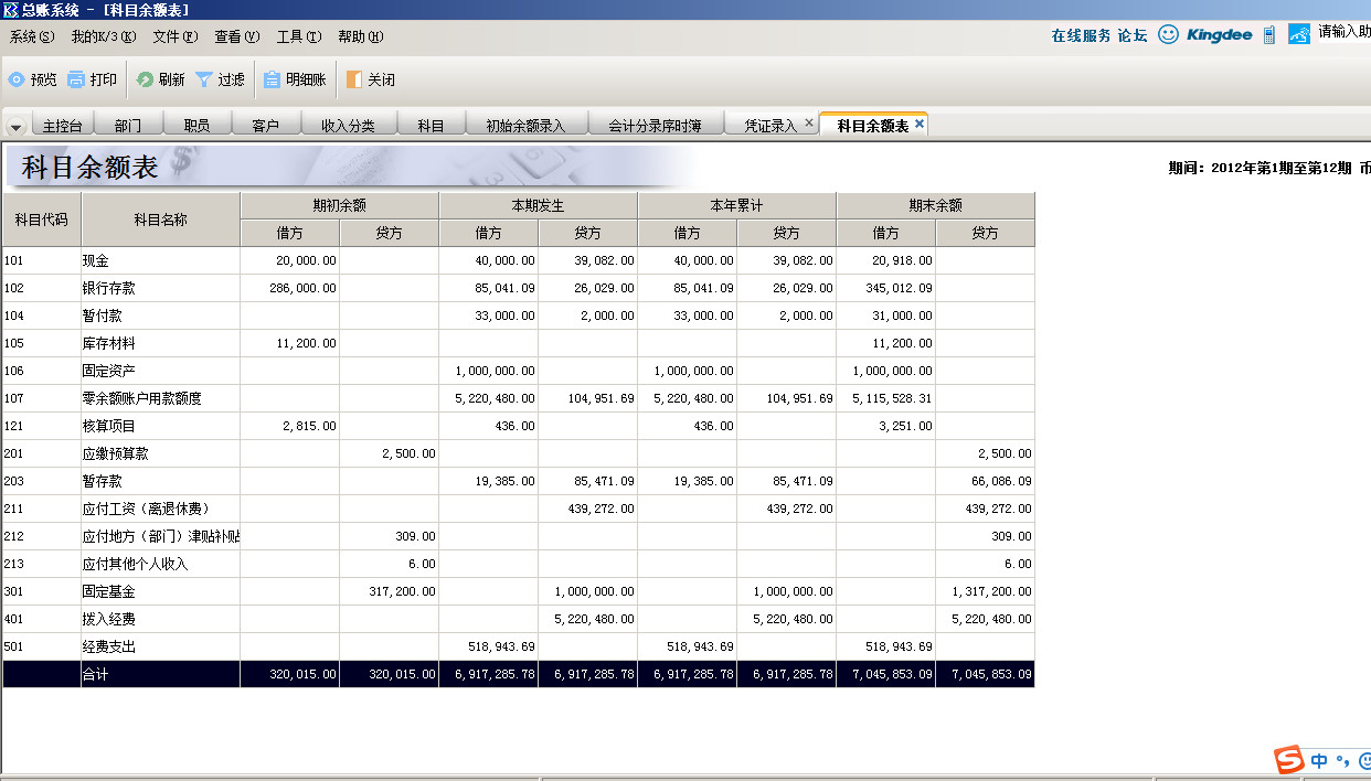金蝶k3科目余额表