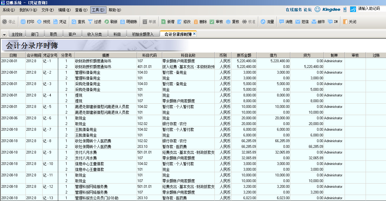 金蝶k3凭证列表