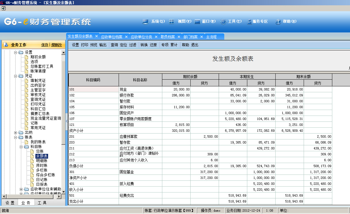 畅捷通g6科目余额表