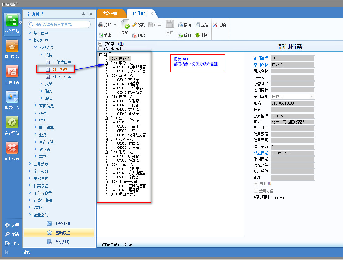 001-01用友部门档案