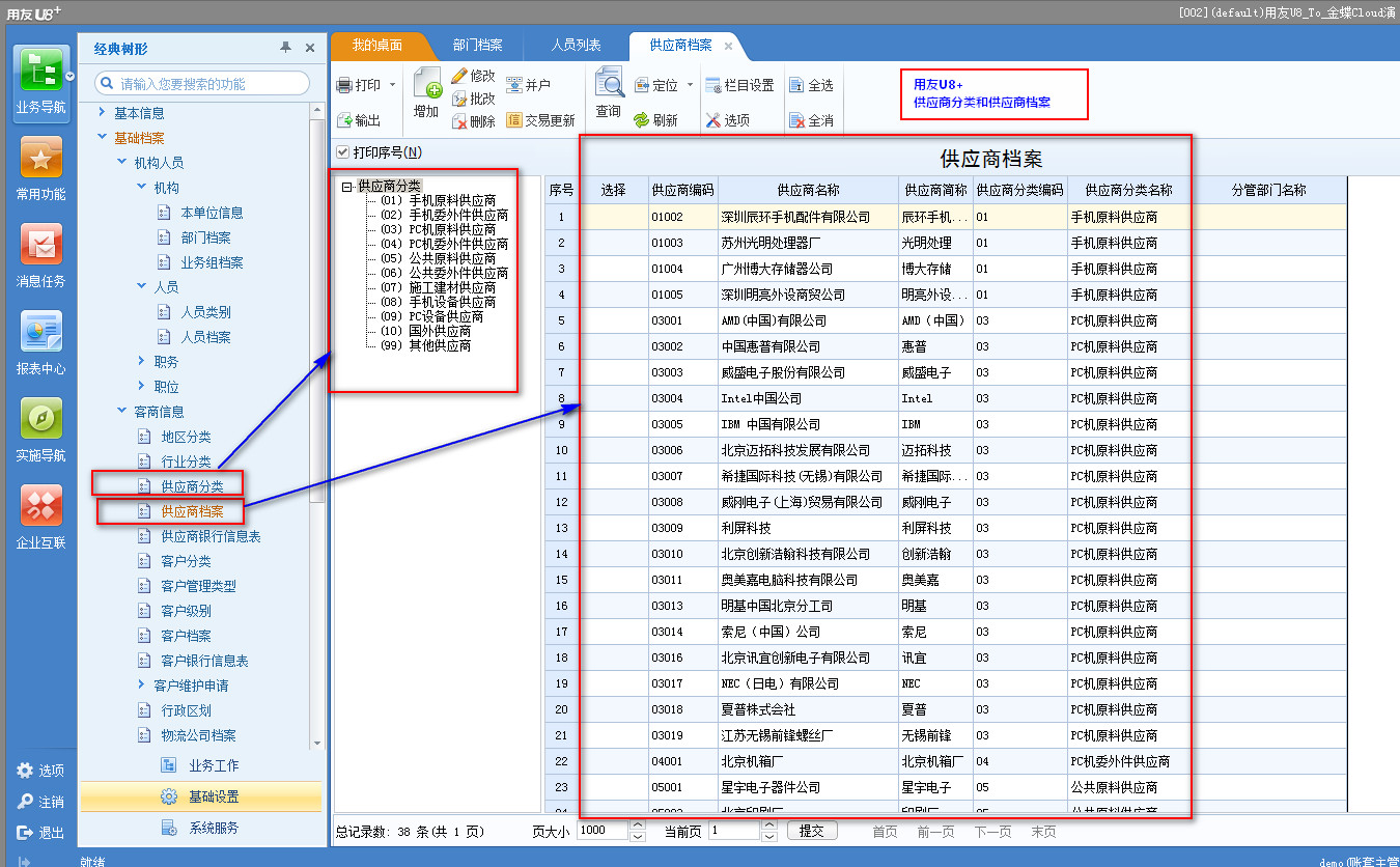 003-01用友供应商分类和供应商档案