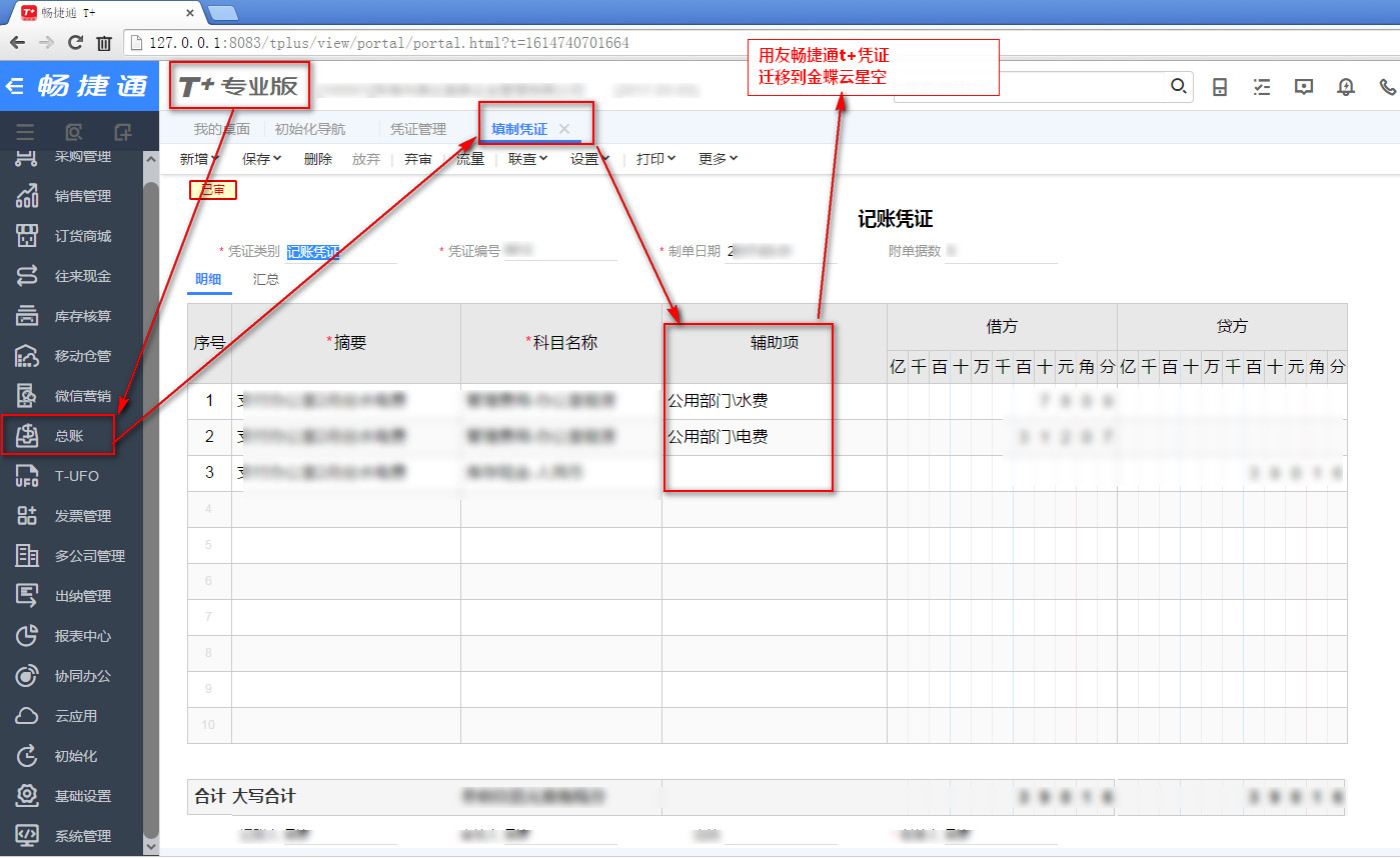 用友畅捷通t+总账凭证迁移导入到金蝶云星空.cloud企业版