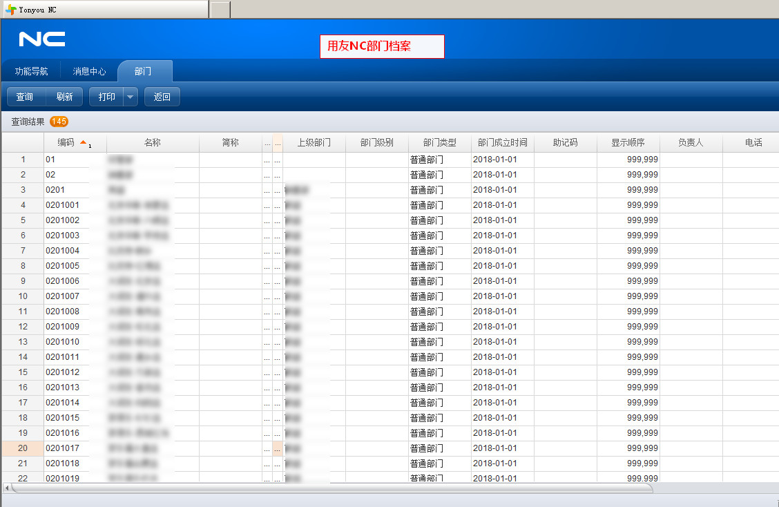 001-01-用友nc部门档案