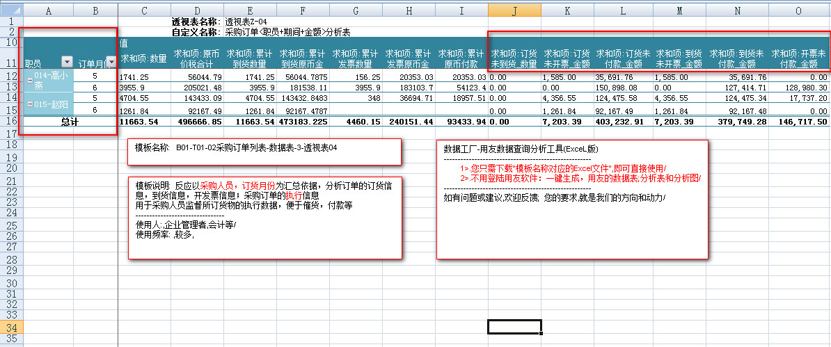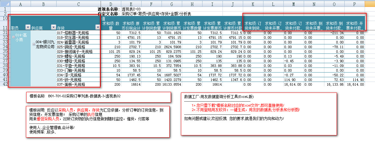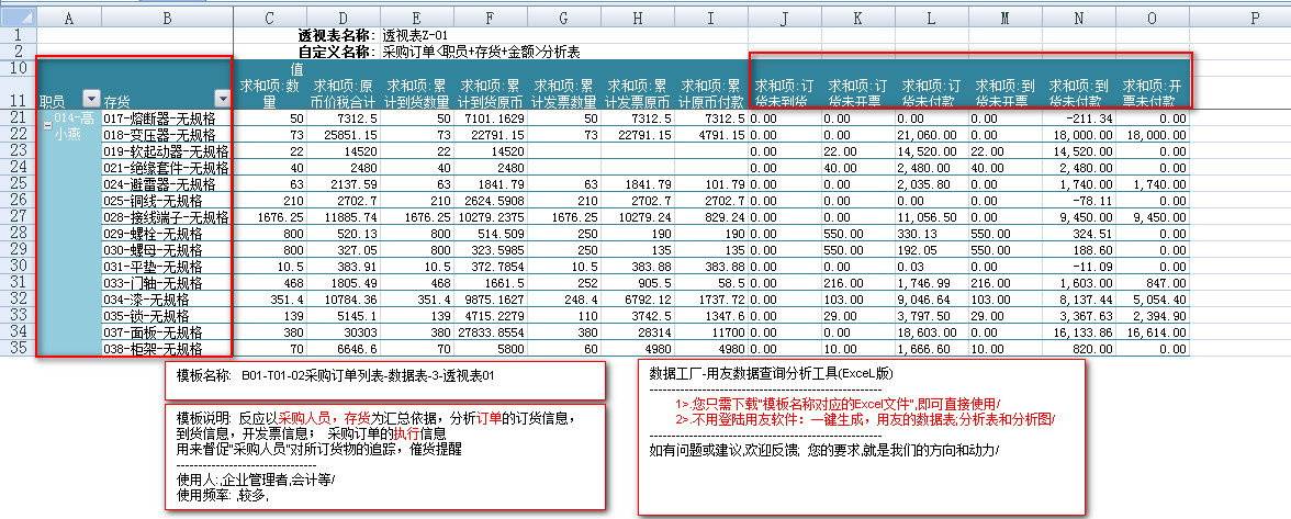 模板文件的名称: < B01-T01-02采购订单列表-数据表>