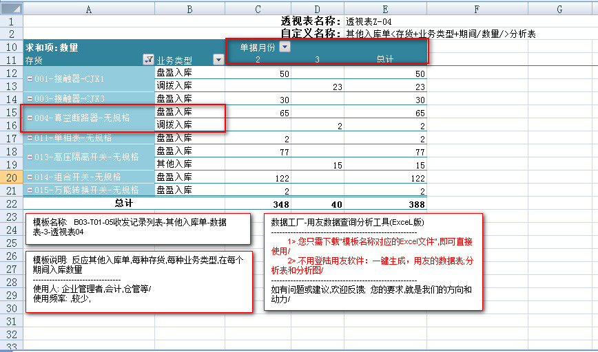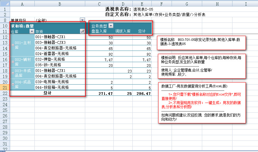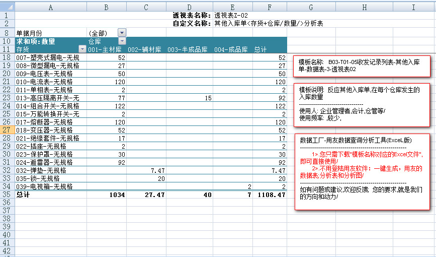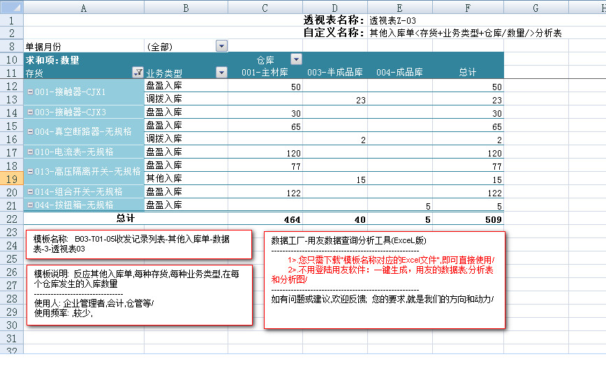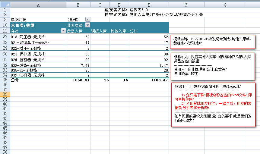 模板文件的名称: < B03-T01-05收发记录列表-其他入库单-数据表>
