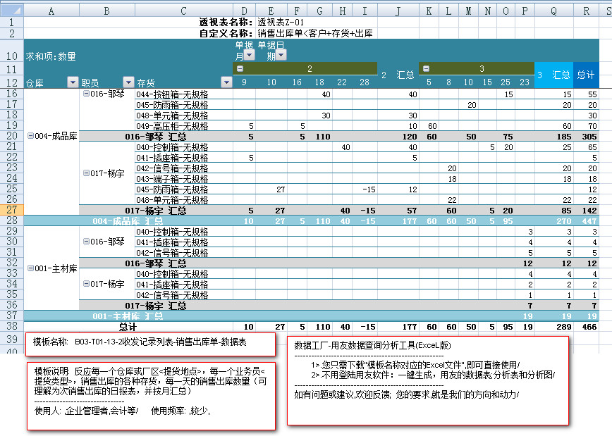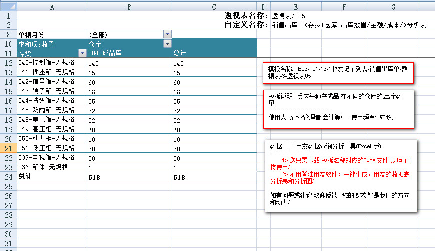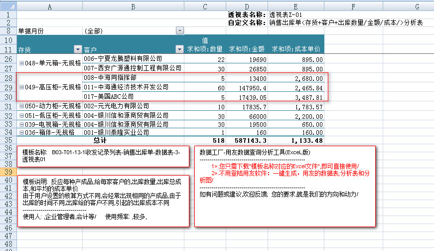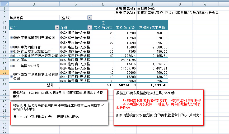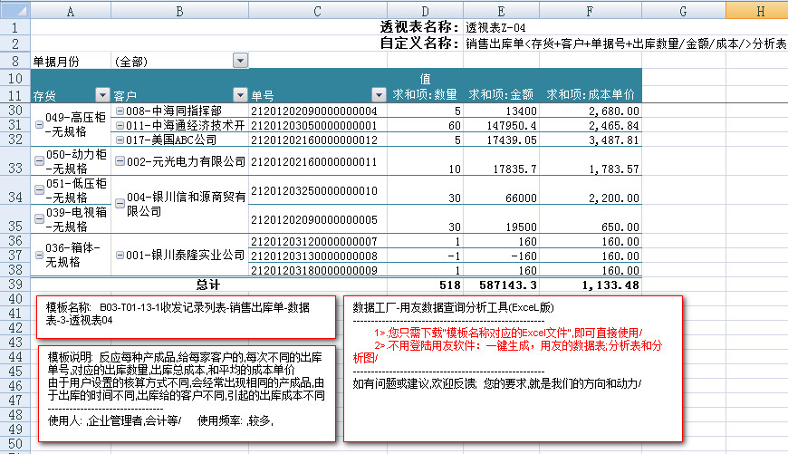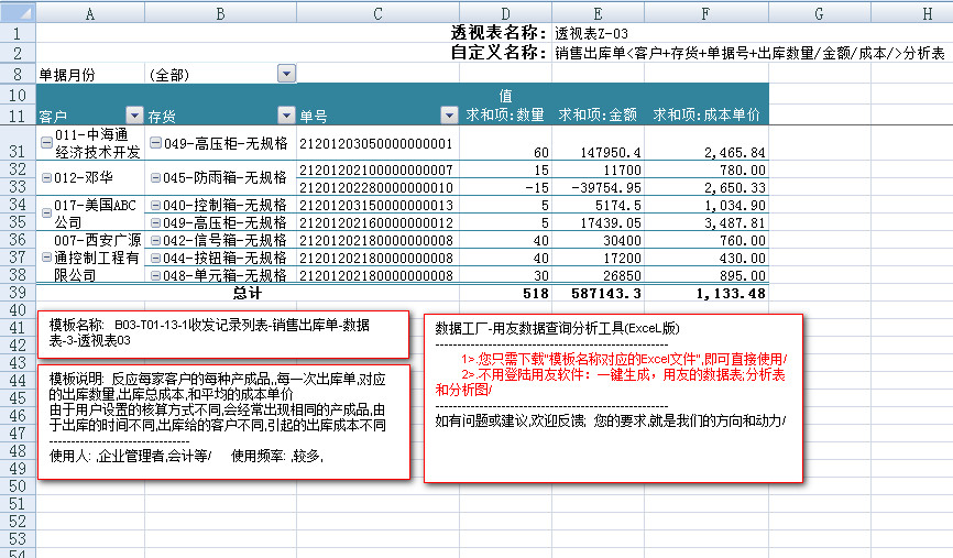 模板文件的名称: < B03-T01-13-1收发记录列表-销售出库单-数据表>