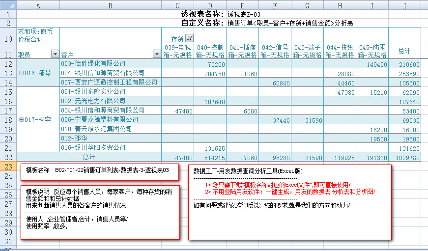 模板文件的名称: < B02-T01-02销售订单列表-数据表>