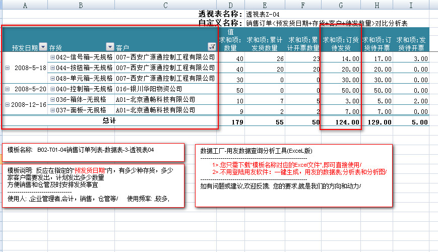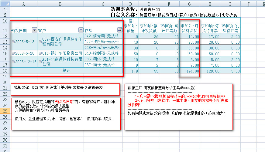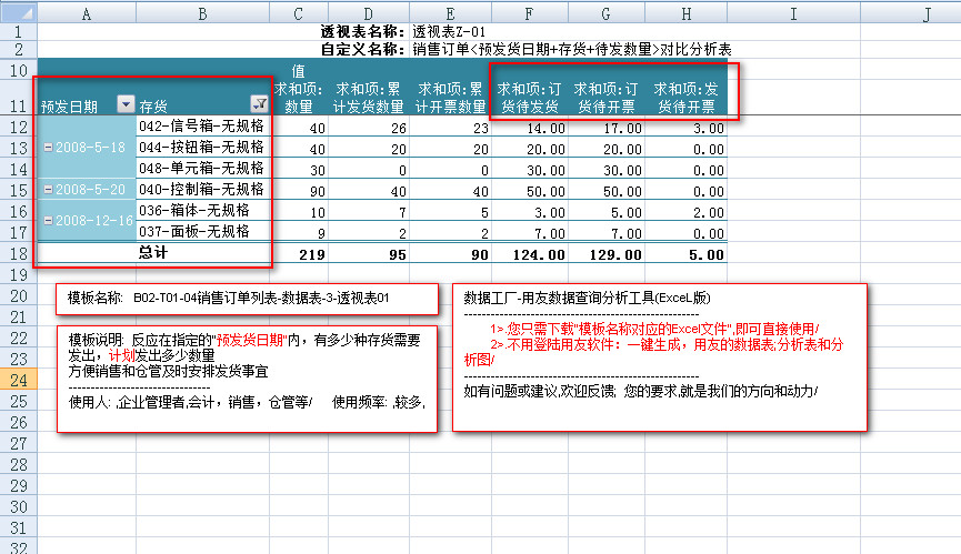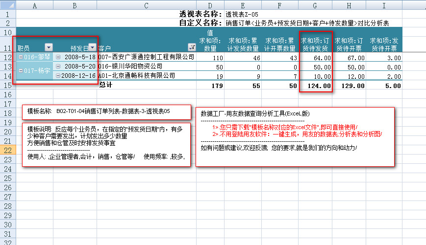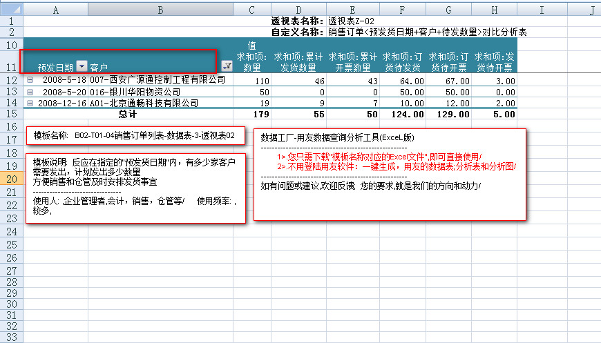 模板文件的名称: < B02-T01-04销售订单列表-数据表>