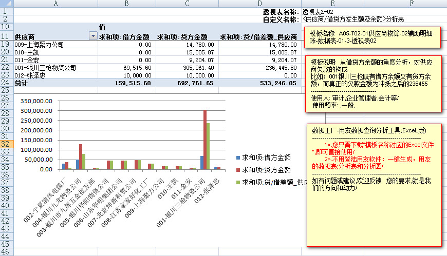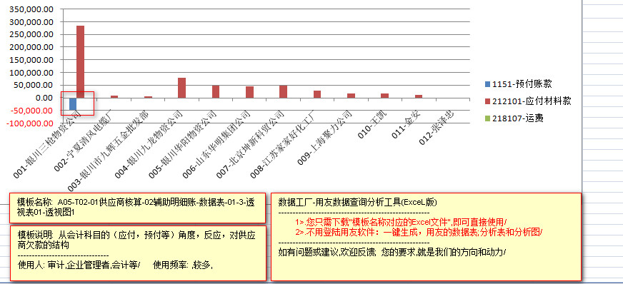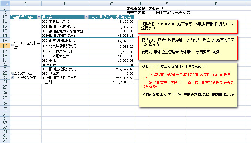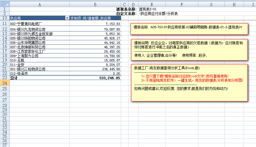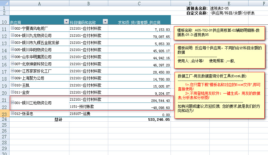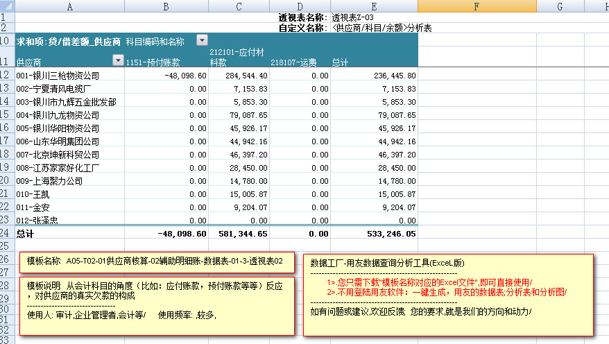 模板文件的名称: < A05-T02-01供应商核算-辅助明细账-数据表>