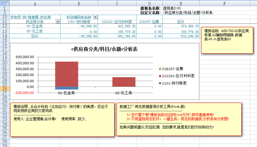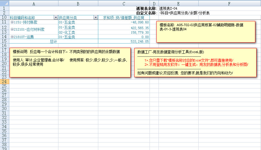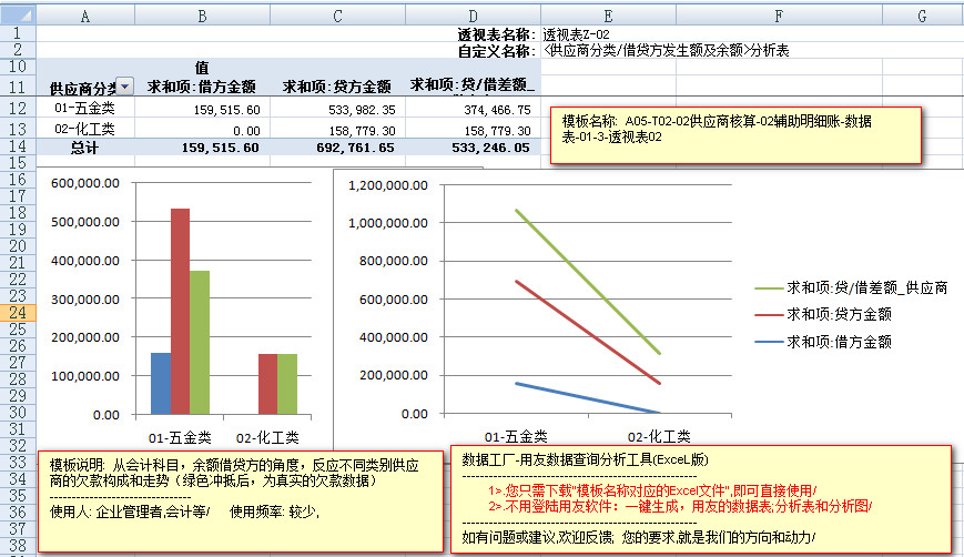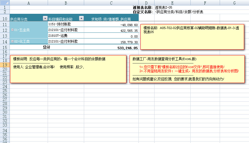 模板文件的名称: < A05-T02-02供应商核算-辅助明细账-数据表>