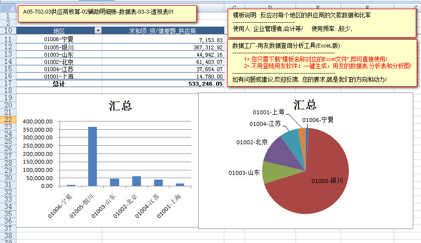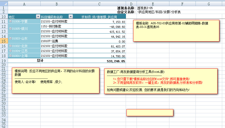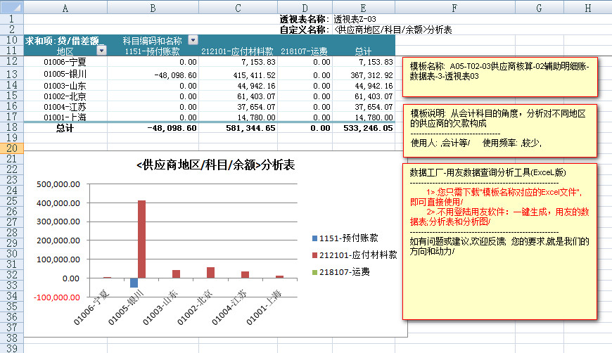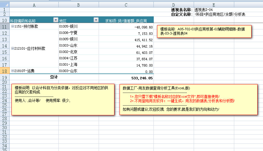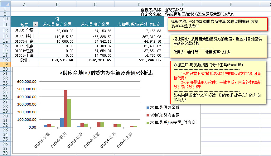 模板文件的名称: < A05-T02-03供应商核算-辅助明细账-数据表>