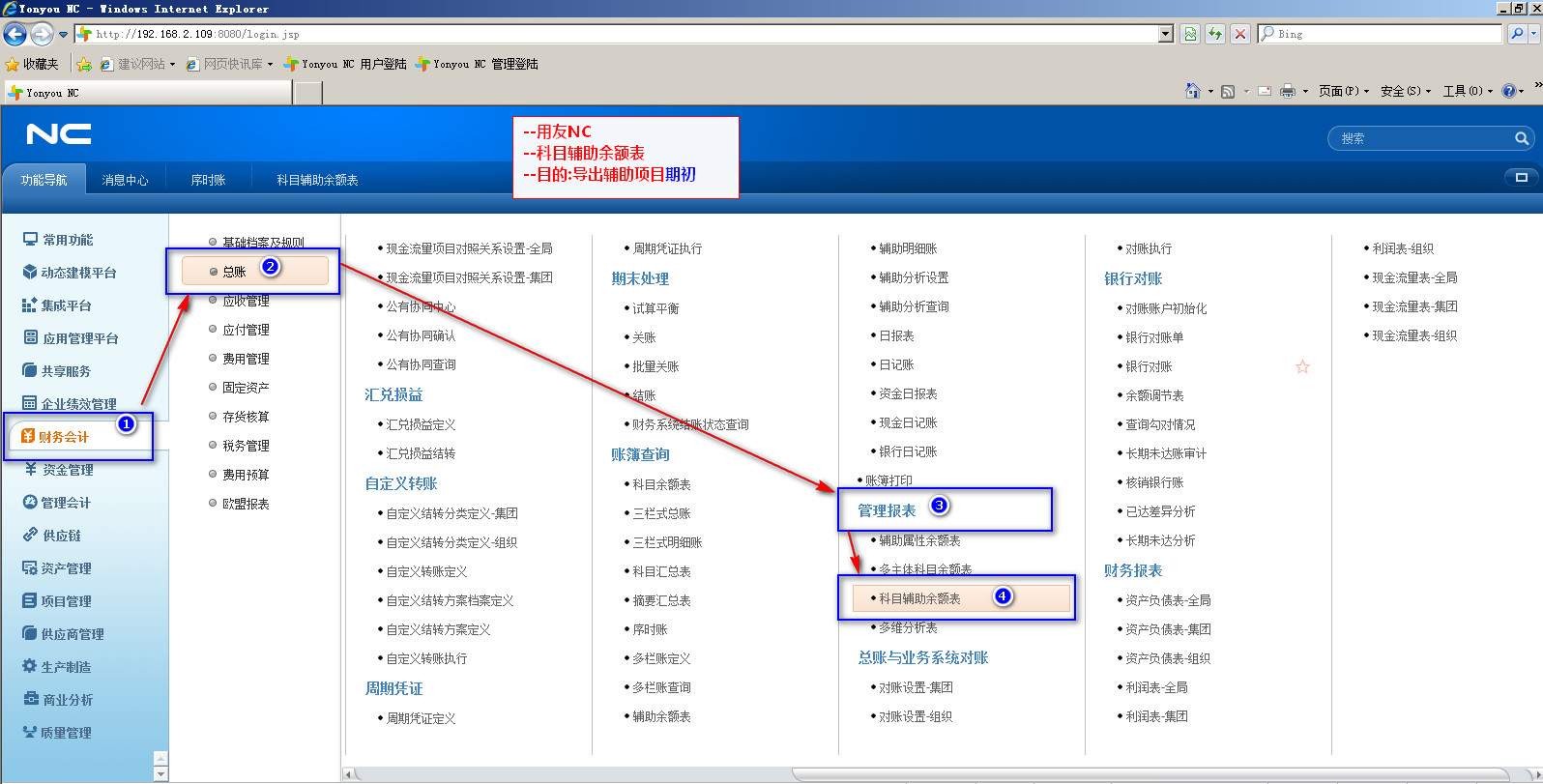 101-01用友nc科目辅助项期初-登录路径