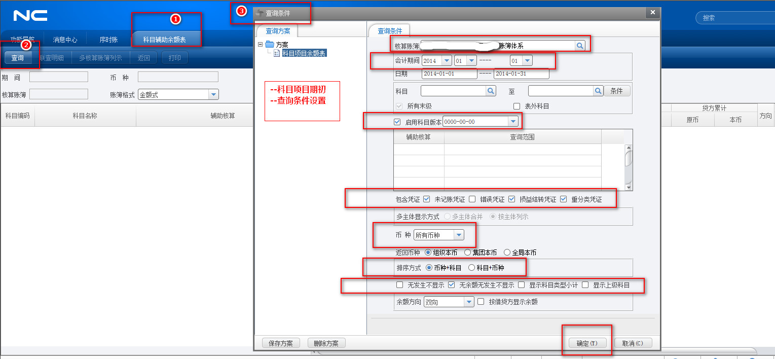 101-02用友nc科目辅助项期初-查询条件