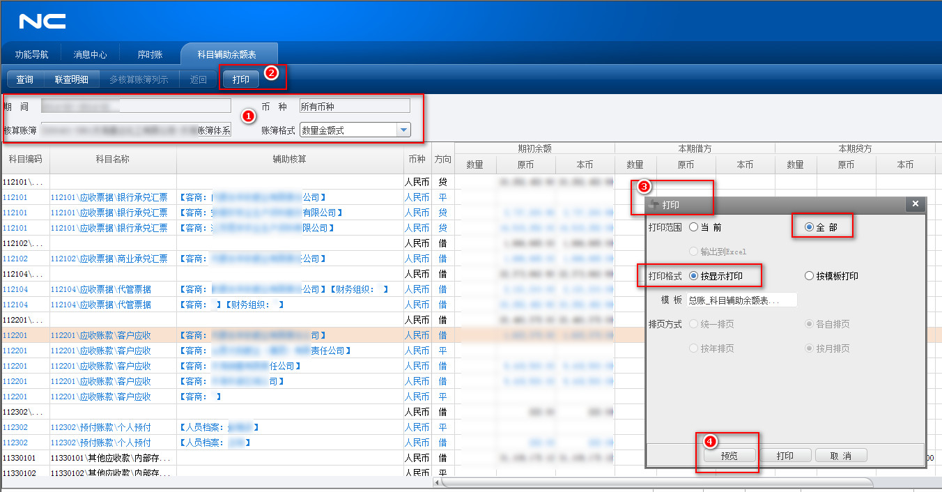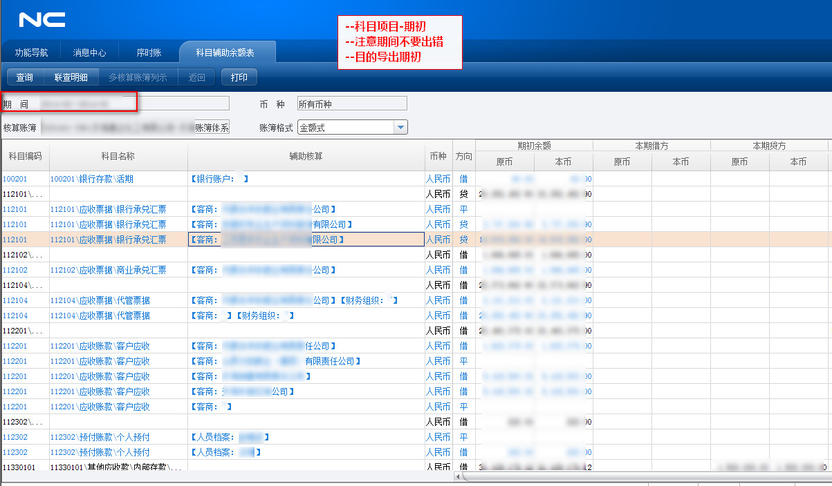 101-05用友nc科目辅助项期初-导出路径