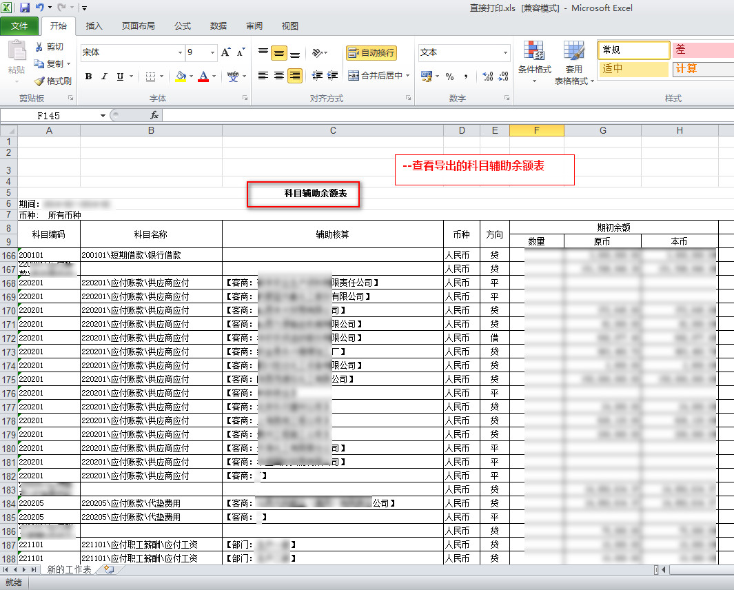 101-06用友nc科目辅助项期初-查看导出文件